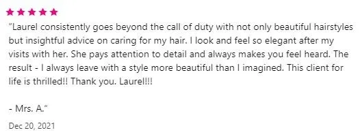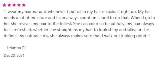 A few things about the owner. Wife and mother of two beautiful little girls. Laurel enjoys traveling with her family. Sports nutrition and cryptocurrency keep her busy when she is not doing hair.